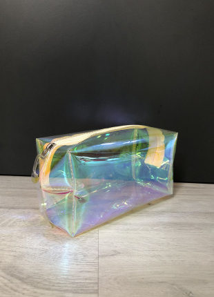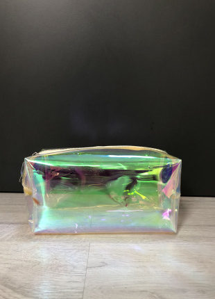 Makyaj ve Kozmetik çantası Kumaş türü: Hologram PVC kumaş En:19cm; Yükseklik:10cm; Genişlik:8cm -