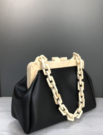 Siyah Kadın Plastik Zincirli Burslu Çanta